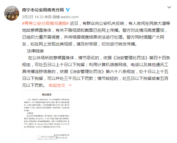 2月2日14:33分,@南宁市公安局青秀分局发布通告↓↓↓