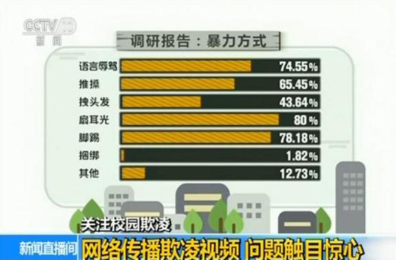 “校园欺凌”严重影响着青少年的身心健康,而大量的相关视频在网络上传播则使影响进一步扩大,对当事人构成严重的二次伤害。我们央视记者就曾对网络上流传的一百个校园暴力视频进行了分析,暴露出的问题令人触目惊心。