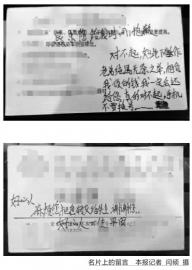 背面写着:“对不起,如此下作,老弟纯属无奈之举,相信我,你的钱我一定会还给您,真的对不起。”留言里还强调,“手机不要换号,恳求您给我时间,抱歉。”